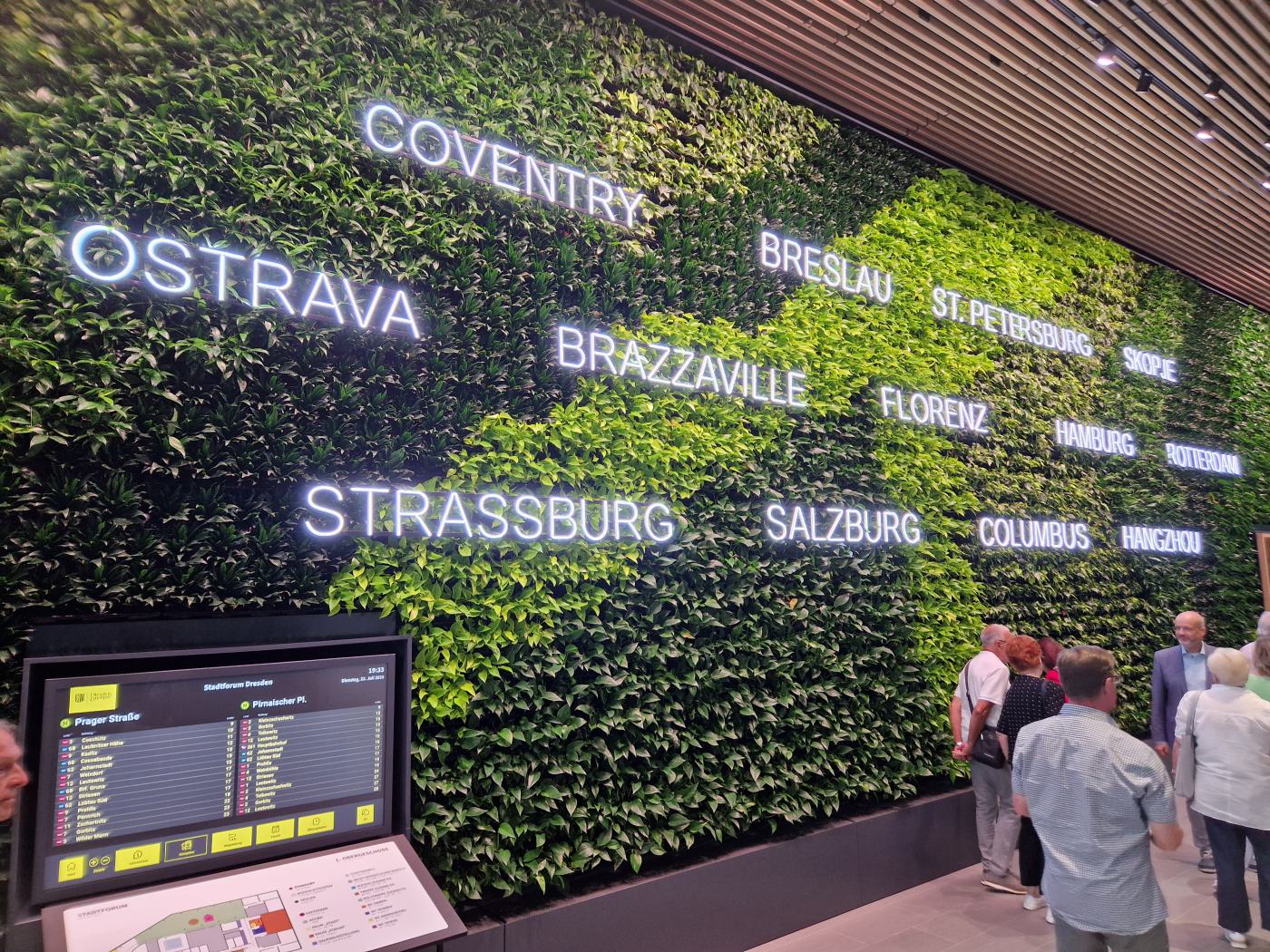 Wir sahen eine grüne Wand, gestaltet von 110.000 Grünpflanzen in Töpfen. Darauf waren alle Partnerstädte Dresdens zu sehen, unter anderem auch die Hauptstadt Niederschlesiens - Breslau.