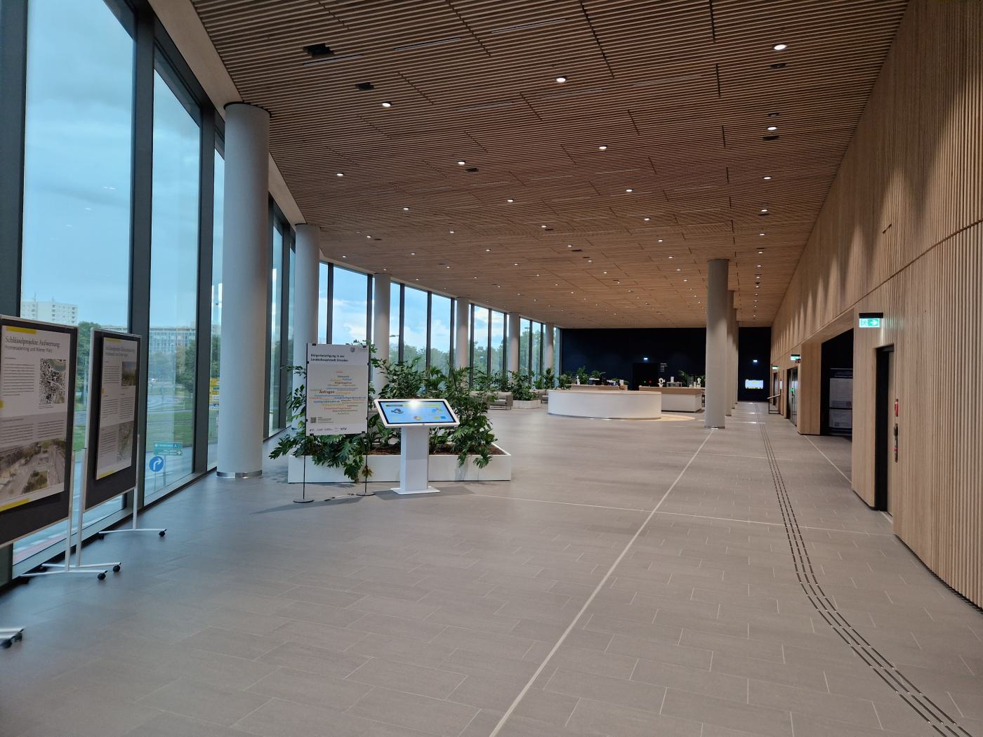 Sehe ich mal von den Parkmöglichkeiten für die Angestellten ab, stehen den Besuchern 100 Stellplätze in der Tiefgarage für PKW zur Verfügung. Wer mit dem Fahrrad kommt, dem stehen auf ebener Erde 80 Stellplätze zur Verfügung.